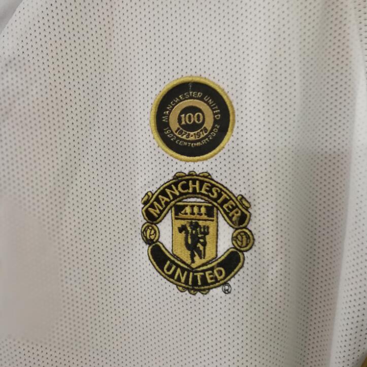 2002 Manchester UTD 100 years white fans 1:1 Quality Soccer Jersey Size S-2XL